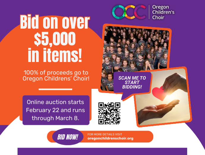 « All Events Oregon Children’s Choir: Benefit Auction March 8 @ 3:30 pm - 6:00 pm « Pacific Lutheran University: Choral Union Oregon Children’s Choir Concert » Add to calendar Google Calendar iCalendar Outlook 365 Outlook Live Details Date: March 8 Time: 3:30 pm - 6:00 pm Website: https://www.oregonchildrenschoir.org/calendar Organizer Brian Aljian Email executivedirector@oregonchildrenschoir.org Venue First Methodist Church 1376 Olive Street Eugene, Oregon 97401 + Google Map